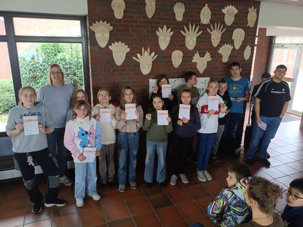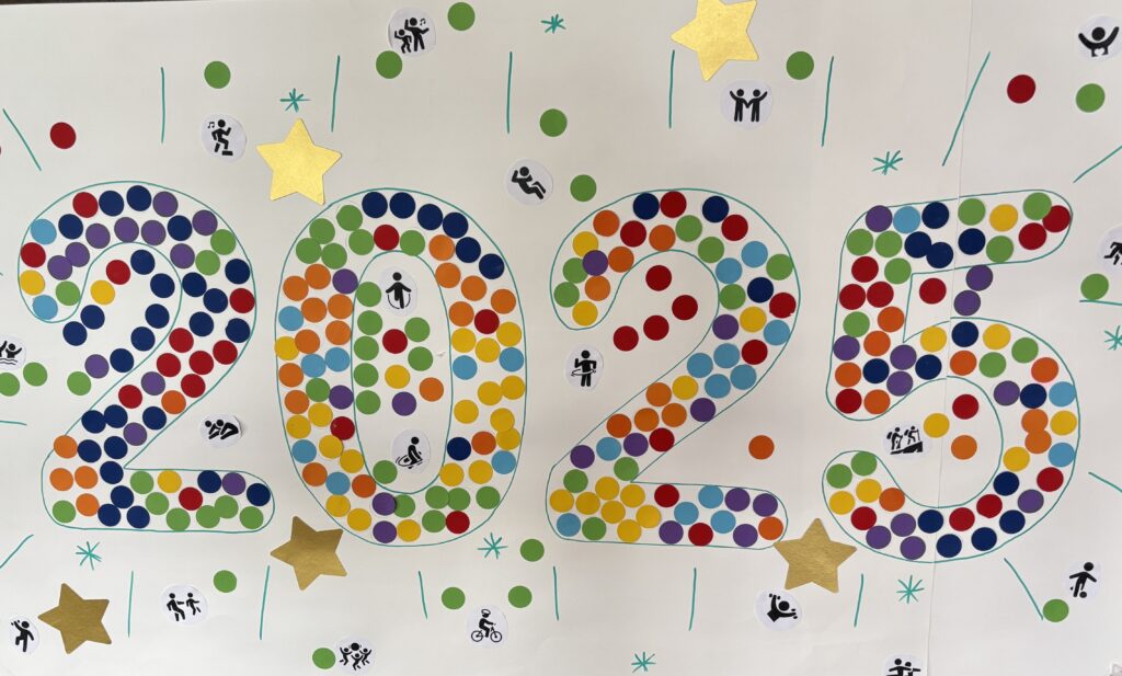 In der vergangenen Woche haben wir erneut am European School Sport Day (ESSD) teilgenommen. Die Power Days haben vom 22.-26.09.2025 stattgefunden. Das Ziel der Woche war es, 2025 Bewegungen mit der gesamten Schulgemeinschaft zu sammeln. Auf einem Plakat konnten die Klassen durch gesammelte Bewegungen Punkte sammeln und in der Pausenhalle aufkleben. So ergab es am Ende eine bunte 2025, die im MKS-Monatsabschluss noch 5 Sterne erhalten hat – natürlich durch gemeinsame Bewegung. Die einzelnen Klassen waren sehr kreativ und haben die Punkte durch Workouts, Spaziergänge, mit dem Fahrrad, auf dem Verkehrsübungsplatz, auf dem Pausenhof, im Schwimm- oder Sportunterricht oder beim Tanzen gesammelt.
